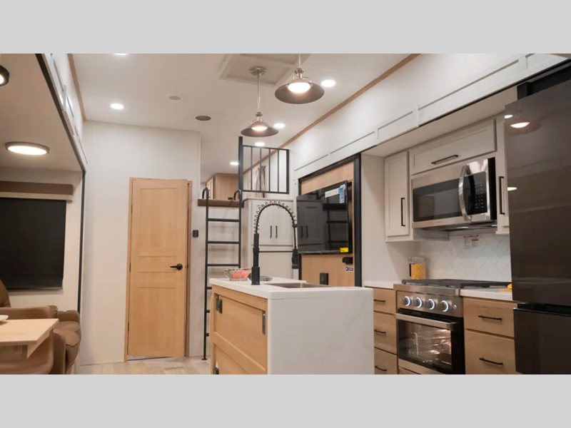 Forest River Sandpiper fifth wheel 3550BH highlights: Kitchen Island Shower with ... more about Sandpiper 3550BH