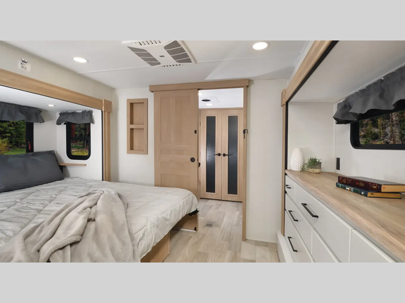 They are created with the perfect balance of size, space, features, and luxury. The automatic electric level up system will make setting up easier and the underbelly armor will protect your unit for years of fun. The Summit Package comes with two 15k BTU A/C units, a BoonDocker solar system, an enclosed, one-piece docking station, and many more convenient camping features.