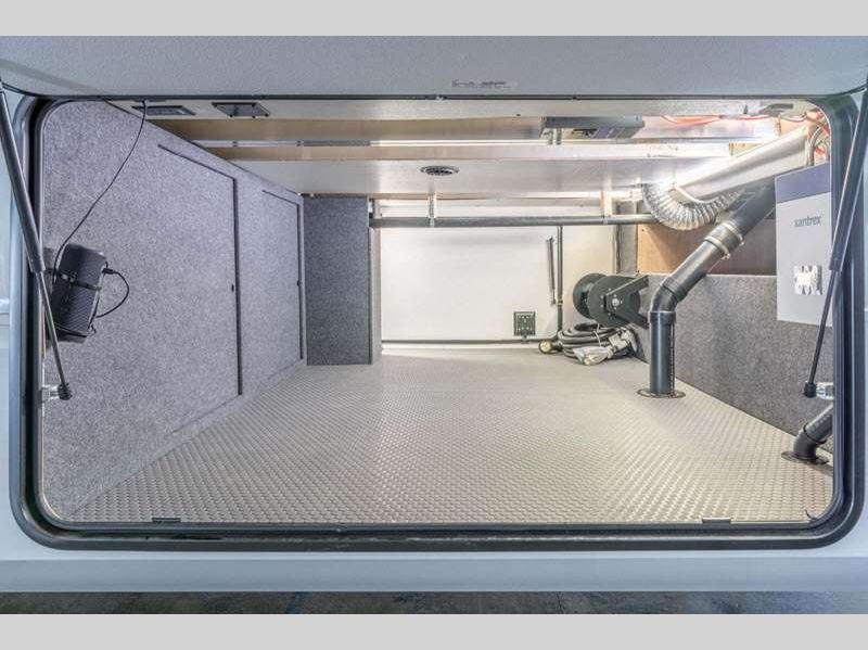 - Steel Powder Coated I-Beam w/Drop-Frame Exterior Storage (offering 160-180 CU FT, F/P specific)